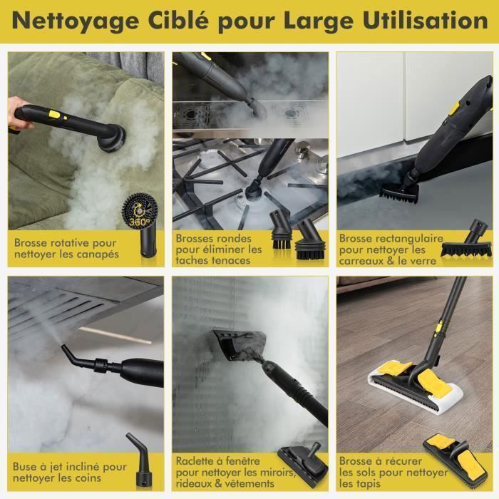 Il y a 15 accessoires, vous pouvez donc éliminer différentes taches tenaces et les Punaise de Lit sur les tapis, les sols, les fenêtres, les rideaux ou même dans les coins.