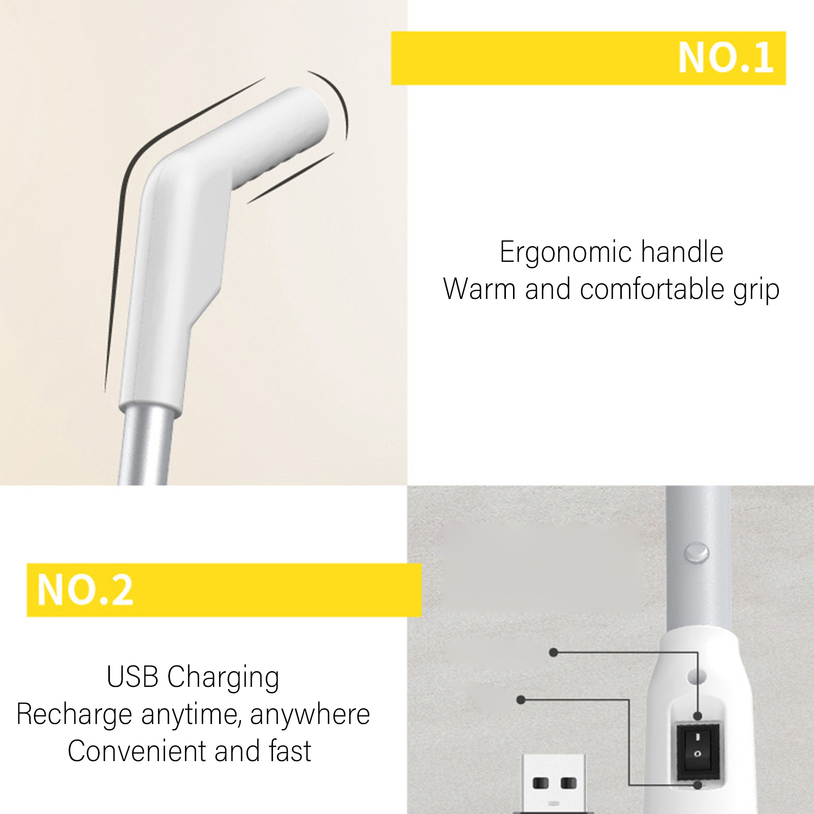 2. CONCEPTION RÉGLABLE ET ROTATIVE: La vadrouille électrique est équipée d’ poteau rétractable, qui vous permet d’ajuster librement la longueur de la tête de vadrouille. Il peut pivoter à 180 degrés de gauche à droite et à 90 degrés pour se tenir debout et nettoyer facilement.