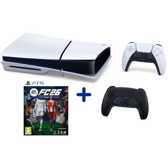 Pack PS5 Standard : Console PlayStation 5 (modèle Slim) + 2ème manette DualSense Noire + FC 26
