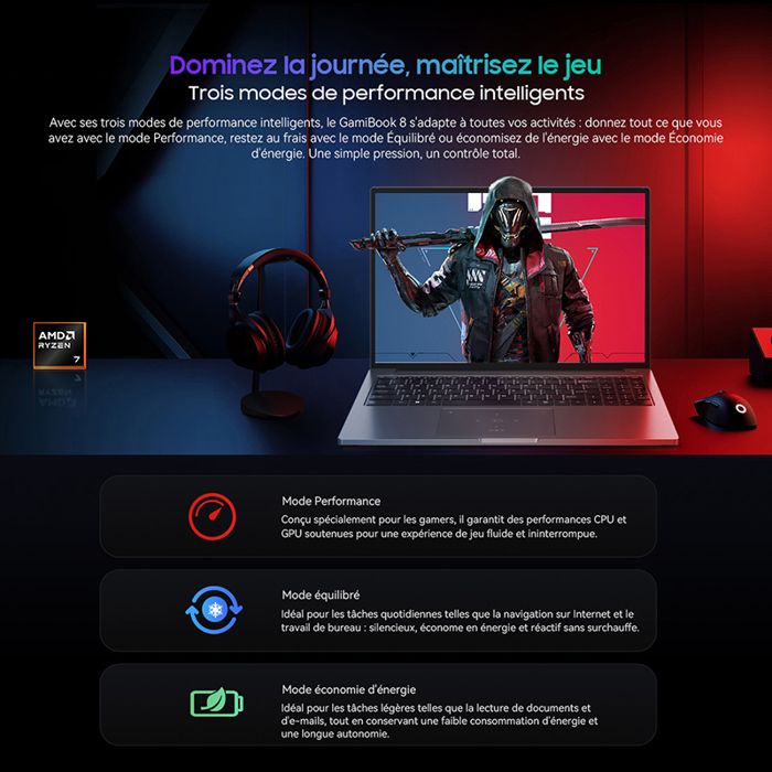 Processeur phare AMD Ryzen™ 7 7735HS — 32 Go DDR5 et extension maximale de 64 Go,SSD intégré de 1 To (M.2 2280) + extension de carte TF jusqu’à 2 To — Écran IPS antireflet de 16 pouces,1920*1200,178°IPS — Clavier multifonction de qualité professionnelle — Windows 11 Pro préinstallé — Trois modes de performance intelligents,Performance Mode/Balanced Mode/Power Saver Mode — Wi-Fi 6 et Wireless BT5.2