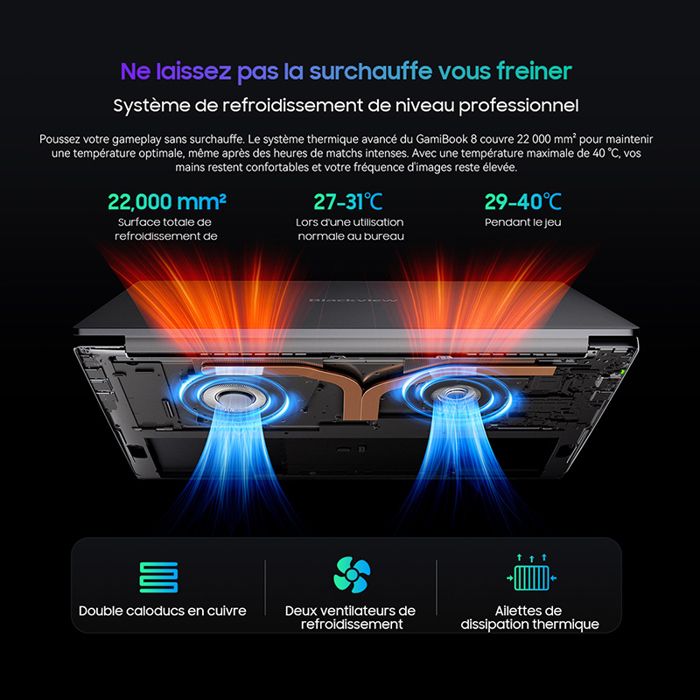 | Nom du produit | PC Portable Gamer Blackview GamiBook 8, 16″ FHD+, RAM 32Go 1To SSD, AMD Ryzen 7 7435HS, Windows 11 Pro Ordinateur Portable – Gris |