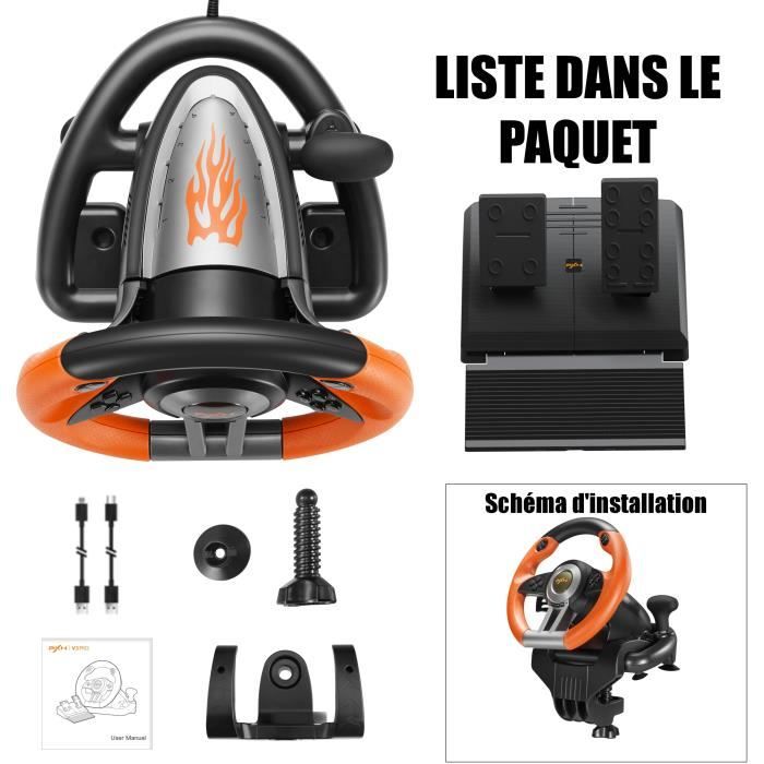 | Nom du produit | PXN V3IIIO Volant de Course avec Pédales, Retour de Vibratoire, 180° Volant pour PC, Xbox, PS3, PS4, Nintendo Switch |