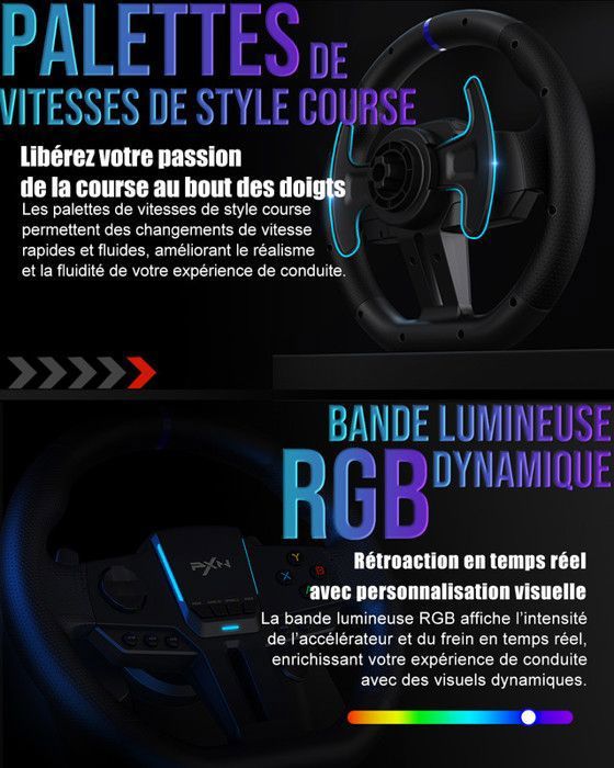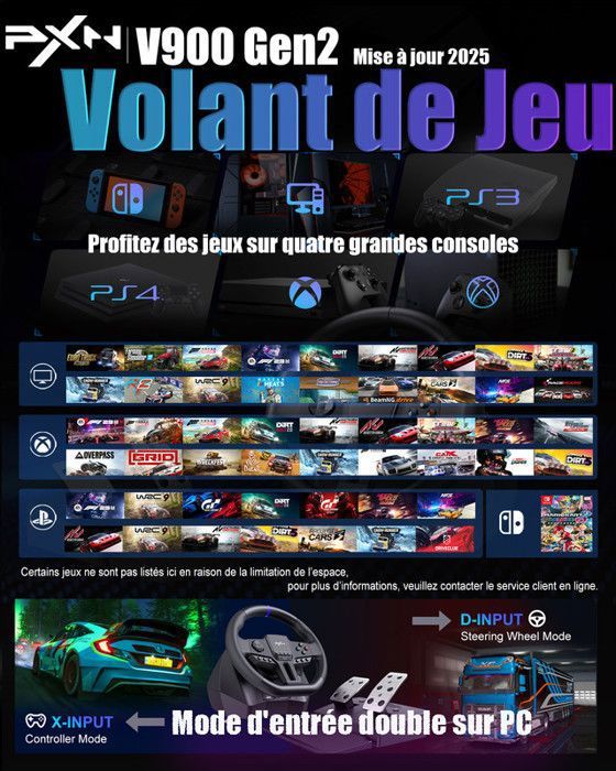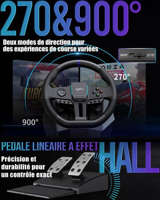 | Nom du produit | PXN V900 GEN2 Volant de Course avec Pédales, Retour de Vibratoire, 270-900° Volant pour PC, Xbox, PS3, PS4, Nintendo Switch |