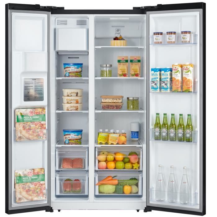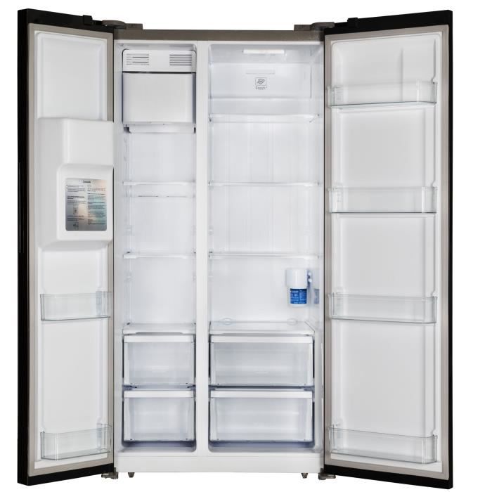 Réfrigérateur américain – CONTINENTAL EDISON – CERANF556B1 – Distributeur eau / glaçons – Classe E – 91,1 x 70,6 x 178 cm – Noir
