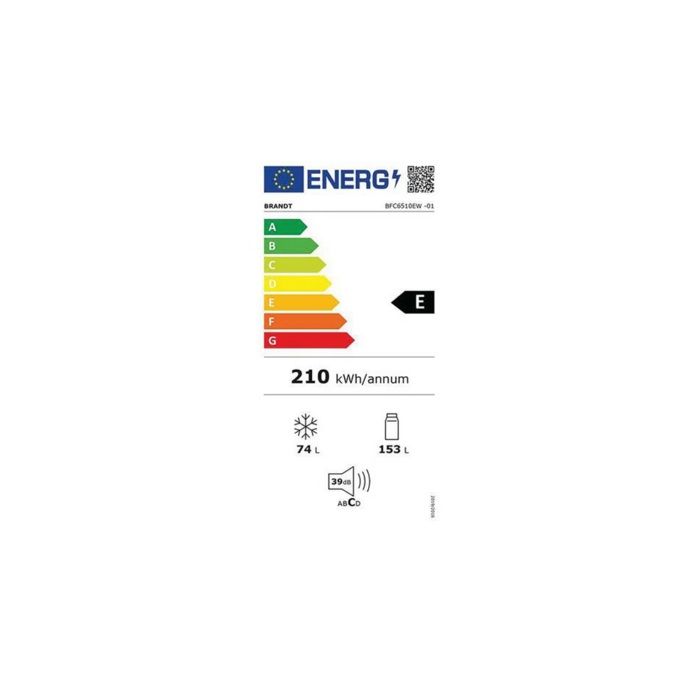 | Nom du produit | Réfrigérateur combiné BRANDT BFC6510EW – Blanc – 2 portes – Froid ventilé – Distributeur |