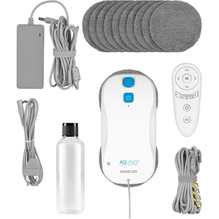 Nettoyer les vitres en un rien de temps et sans effort ? Non, ce n’est pas une utopie. Avec le robot nettoyeur Aquino de Sencor, vous pouvez nettoyer vos vitres rapidement et facilement. Il suffit de brancher l’appareil sur la prise, de le poser sur la vitre et de le mettre en marche. Tout le reste est pris en charge. Une fois le programme sélectionné, il planifie le parcours optimal et, grâce à la combinaison d’un aspirateur puissant et de deux serpillières rotatives en microfibres, il peut venir à bout des taches et des vitres très poussiéreuses. Vous pouvez regarder vos vitres briller depuis le confort de votre canapé.