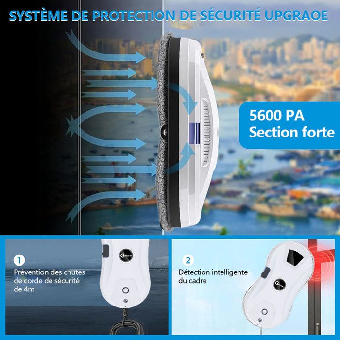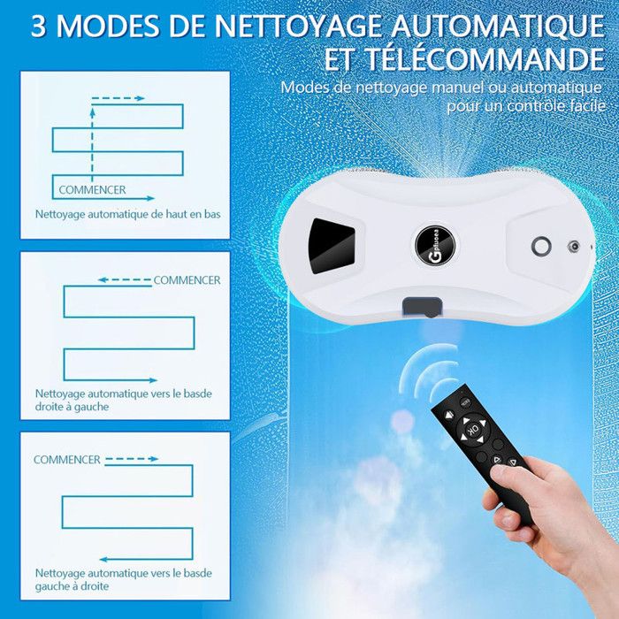 | Nom du produit | Robot Laveur Vitre Electrique 5600Pa – Fonction de Pulvérisation d’eau – 3 Modes, Télécommande et 10 Chiffons de Nettoyage |