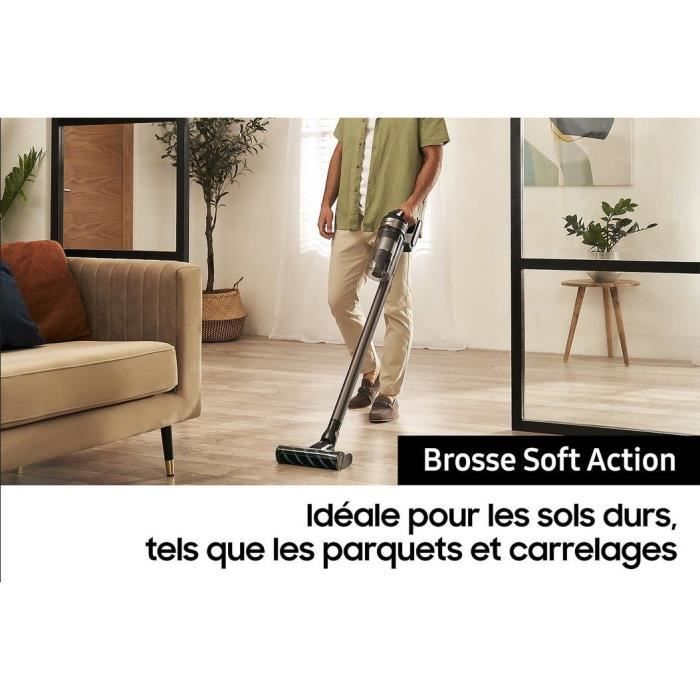 | Nom du produit | SAMSUNG Jet 75E Complete VS20B75CR5 – Aspirateur Balai sans Fil – Puissance 200 AW – Autonomie 60 min – Station murale – 3 brosses |