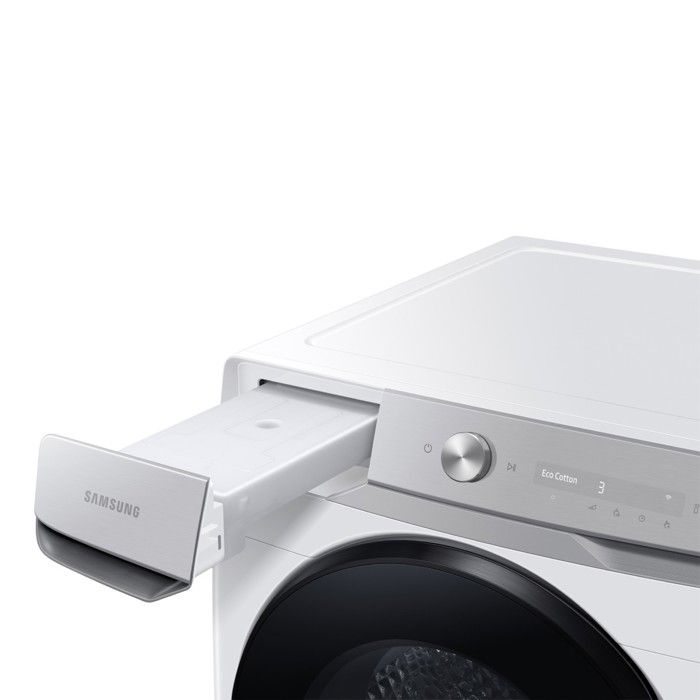 Sèche-linge pompe à chaleur 68.8cm 16kg blanc sèche-linge frontal dv16dg8600bw de samsung.technologie pompe à chaleur hybride : la pompe à chaleur hybride est dotée d’un appareil de chauffage qui préchauffe l’air à la température de séchage appropriée. Une pompe à chaleur maintient ensuite efficacement la température en utilisant du « réfrigérant » pour chauffer l’air et en recyclant l’air chaud.ai dry