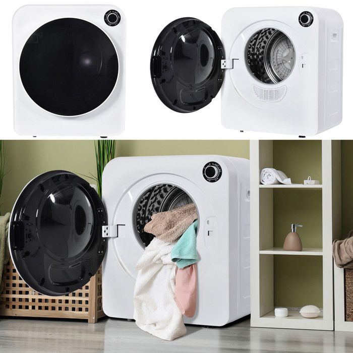 “1.Compact et gain de place – Parfait pour les petits espaces, ce sèche-linge se installe sous un plan de travail, sur une machine à laver ou même au mur. Son câble d’alimentation de 1,5 m offre une flexibilité totale.2.Silencieux avec structure anti-bruit – Avec un niveau sonore de 58-62 dB, il fonctionne même la nuit sans perturber votre tranquillité. La structure physique de réduction du bruit est idéale pour les studios.3.Triple filtration pour un linge propre – Le système à trois filtres (ouate d’entrée, grille de sortie, et ouate de sortie) élimine les résidus et évite la contamination secondaire des vêtements.4. 5 programmes et minuterie réglable – Cinq programmes adaptés à différents besoins (standard, froid, anti-froissage, etc.) et une minuterie de 20 à 180 minutes pour un contrôle précis.5.Tambour en acier inoxydable et design épuré -Le tambour en acier inoxydable résiste à la rouille et assure une longue durée de vie. Le design noir et blanc s’intègre harmonieusement dans votre intérieur.”