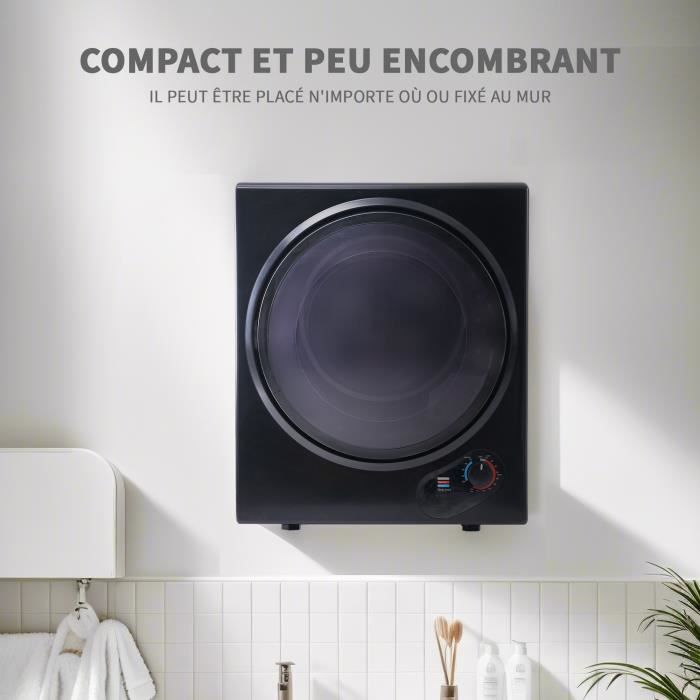 Sèche-linge mural – LEYTN – 2.5 kg – 850W – 62dB – Minuterie 200 mins – Noir