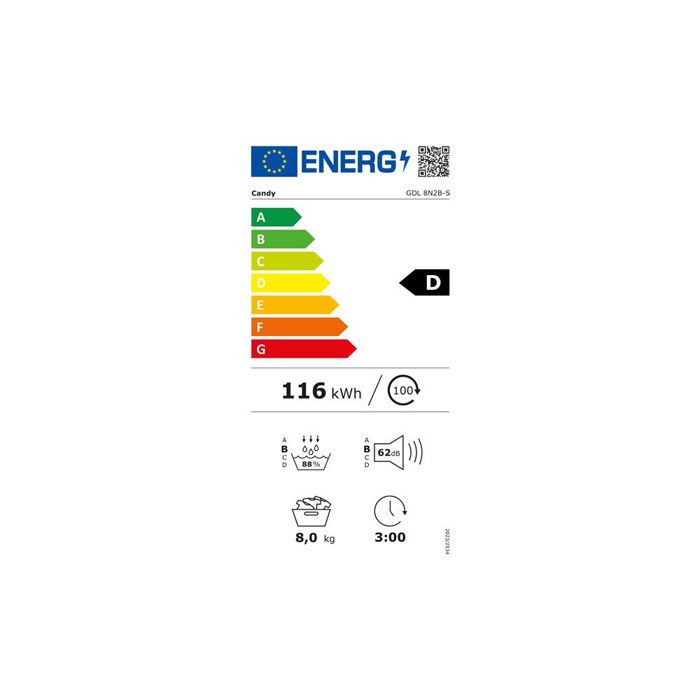| Nom du produit | Sèche-linge, Pompe à chaleur, 8 kg, Classe D CANDY – GDL8N2B-S |