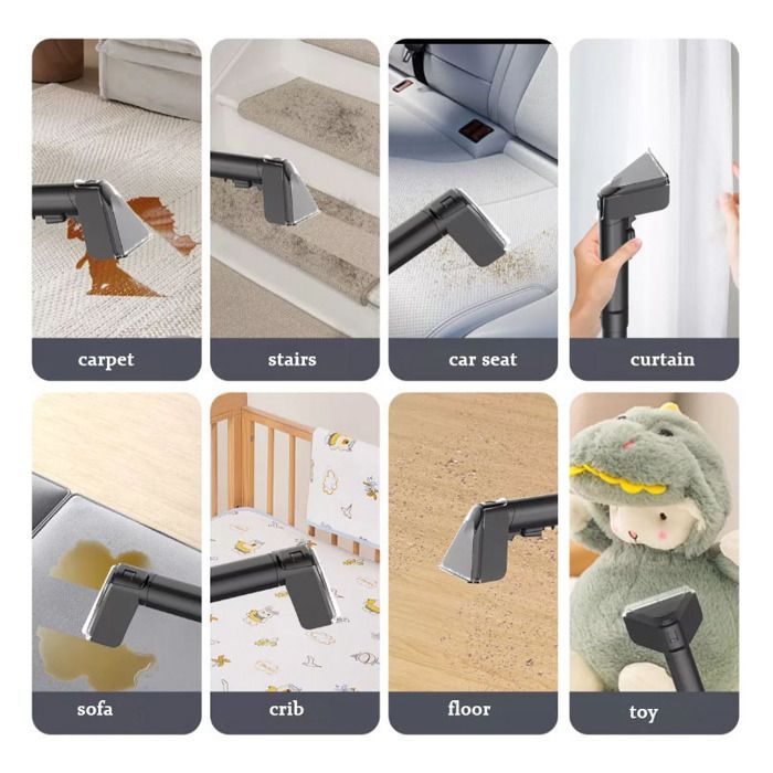 - Inclus : 1 nettoyeur de canapé (liquide de nettoyage non inclus), 3 têtes de nettoyage (tête autonettoyante, tête de brosse standard, tête de brosse standard pour animaux)