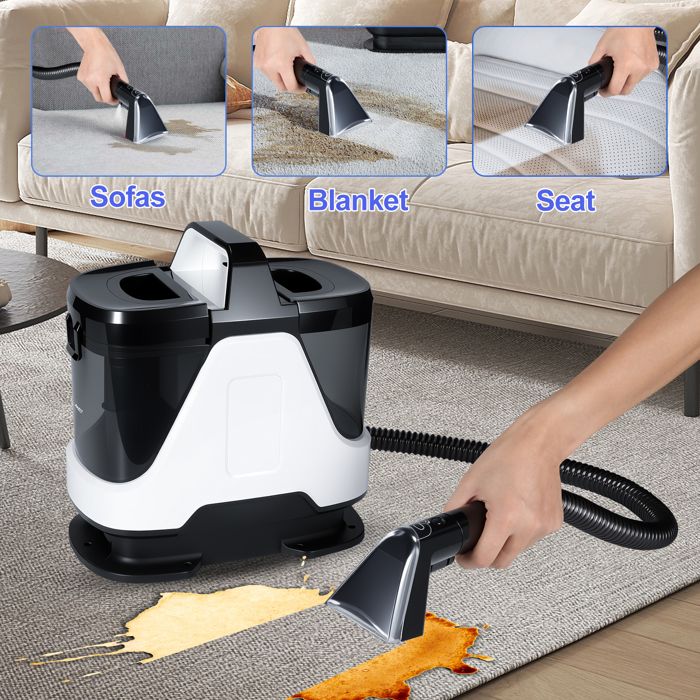 Shampouineuse, 14kPa Nettoyeur canapé tissu, Nettoyeur de tache avec brosse, pour tissus d’ameublement, tapis, canapés, voitures