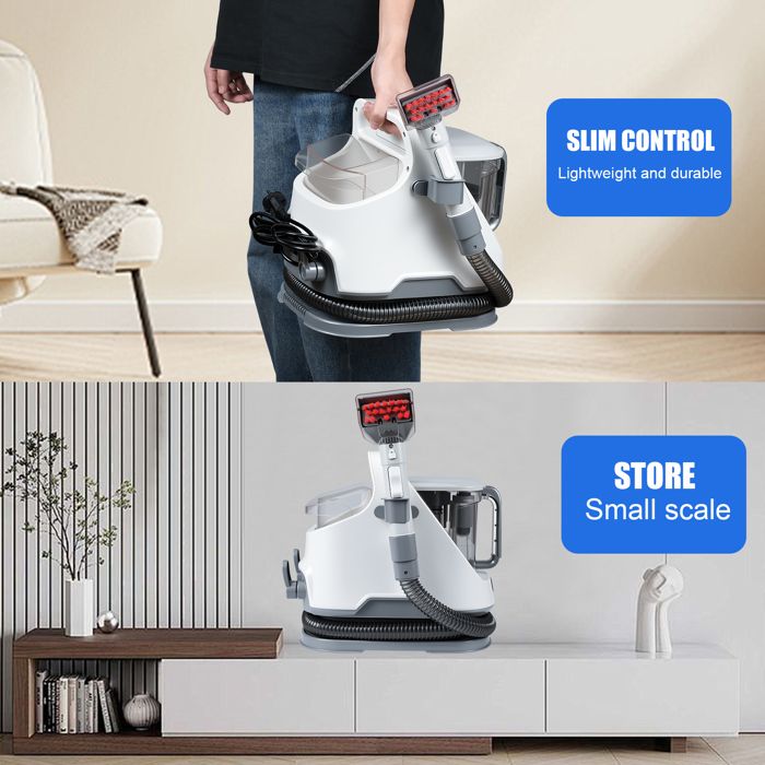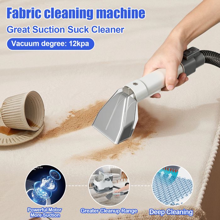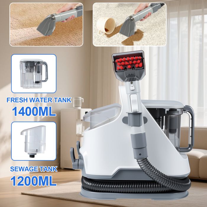 Shampouineuse Canapé 12kpa Détacheur nettoyeur de tache Double Réservoir 1.4L/1.2L Nettoyeur pour Tapis, Meubles, Tissus, Voiture
