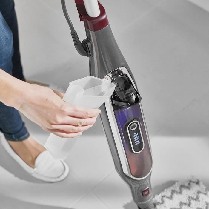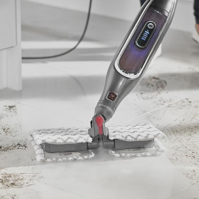 SHARK S6003EU – Balai vapeur – Technologie Klik’n’Flip pour doubler la surface de nettoyage et fixer ou libérer la lingette sans la toucher. 3 niveaux de puissance pour produire exactement la quantité de vapeur nécessaire et un jet de vapeur surpuissant pour décoller les saletés tenaces. Lingettes double-face en microfibre