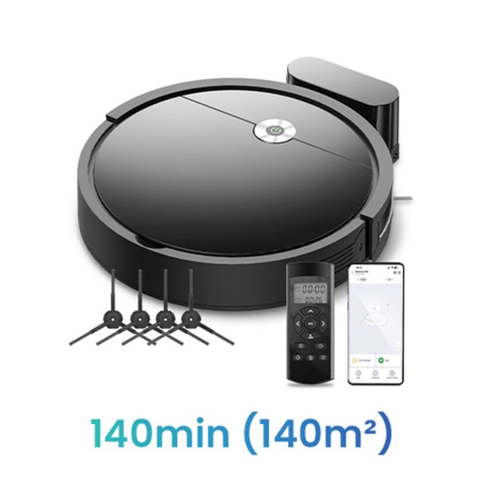 Doté d′une puissance d′aspiration de 3000Pa, il élimine efficacement la poussière, les poils et les saletés sur tous les types de sols. Sa forme fine lui permet de passer sous les meubles pour un nettoyage en profondeur, même dans les zones difficiles d′accès. Avec une autonomie allant jusqu′à 140minutes, il couvre de grandes surfaces sans interruption. Silencieux et intelligent, il se contrôle facilement via Alexa, application mobile ou IFTTT pour un nettoyage totalement autonome.