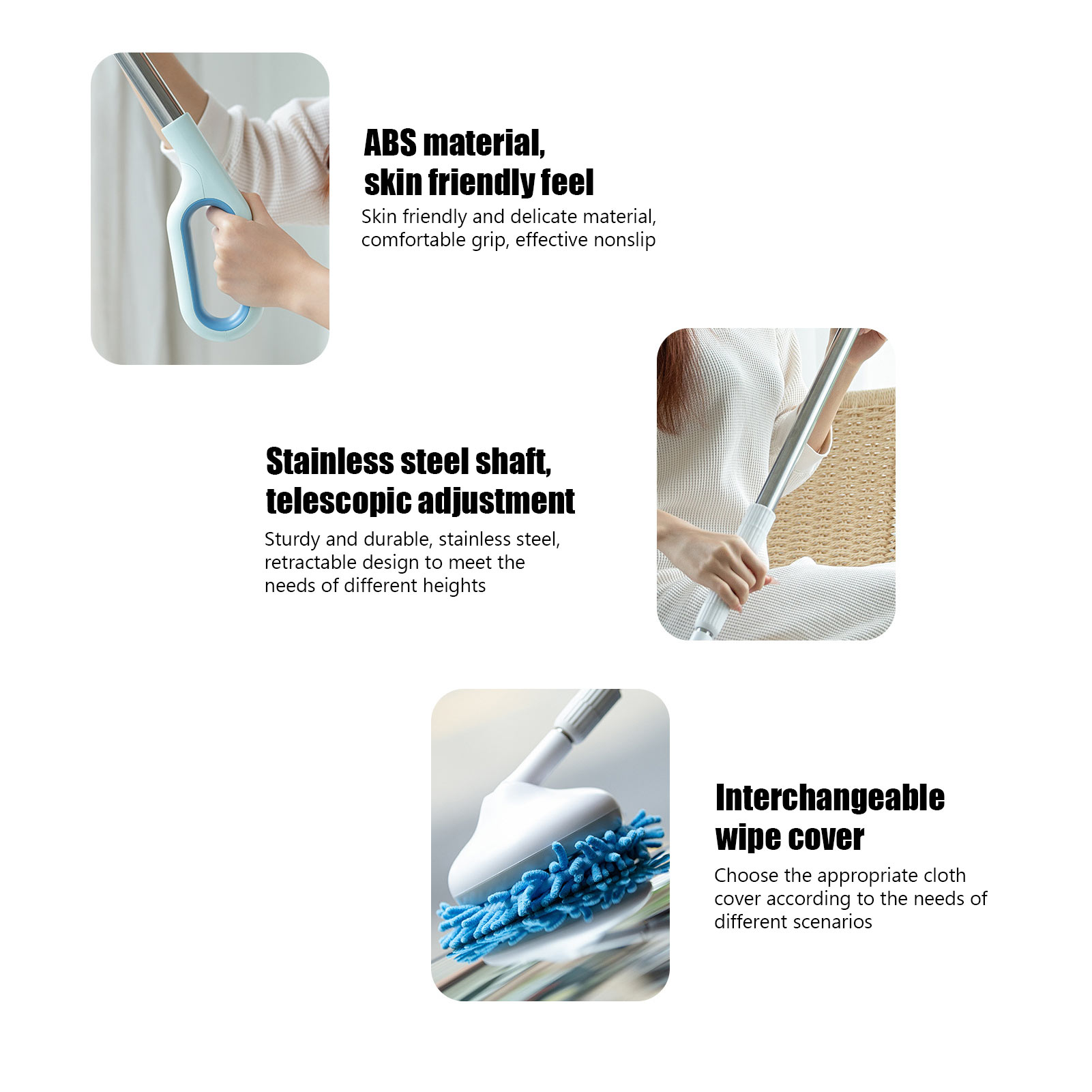 3. Arbre rétractable: L’arbre rétractable rend le nettoyage plus pratique, s’étire librement et n’a pas peur de la hauteur.