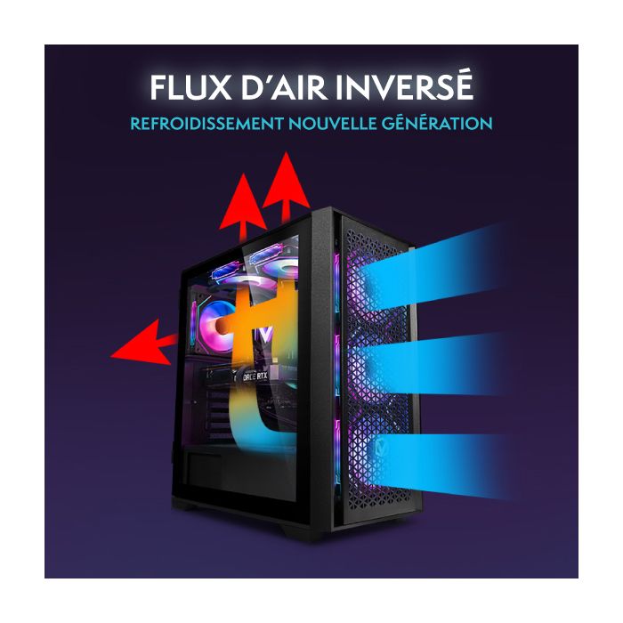 | Caractéristiques | Panneau avant à effet miroir infini | Flux d’air exceptionnel | Conception compacte en verre | Superbe RGB, vue complète des composants |