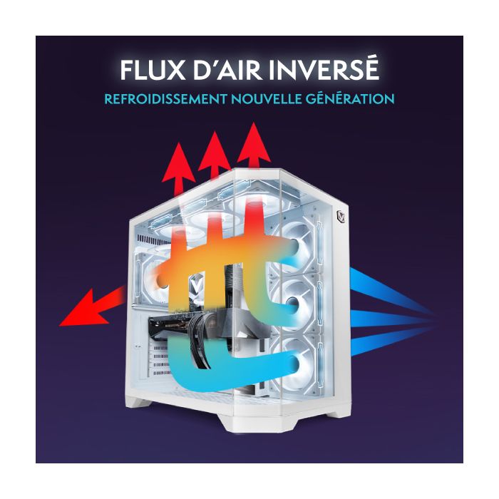 | Caractéristiques | Flux d’air exceptionnel | Conception en verre avec un superbe RVB | Superbe RVB, vue complète des composants |