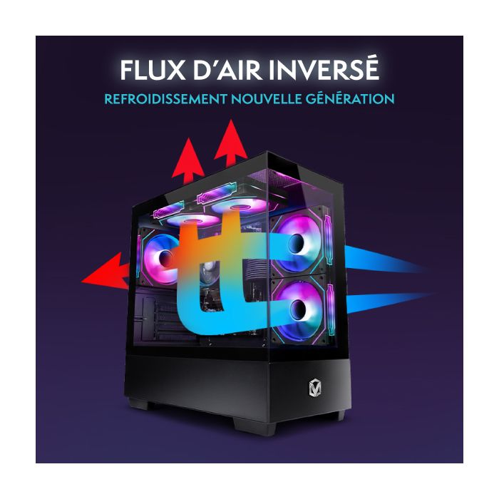 Les ventilateurs hexagonaux haute performance Vibox améliorent le flux d’air tout en offrant un superbe effet lumineux miroir infini. Personnalisez votre configuration avec plusieurs modes et couleurs RVB pour une expérience de jeu dynamique et unique.