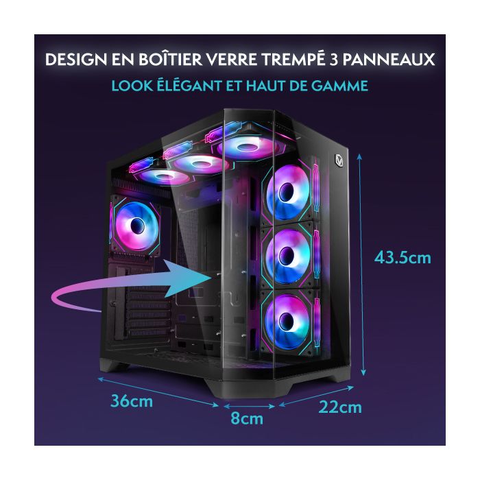| Caractéristiques | Flux d’air exceptionnel | Conception en verre avec un superbe RVB | Superbe RVB, vue complète des composants |